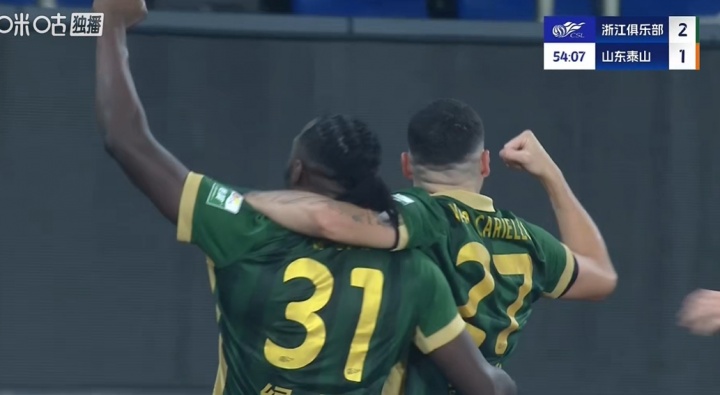 这球帅!李提香不看球直塞+奥乌苏回转 爆射破门,浙江2-1反超泰山