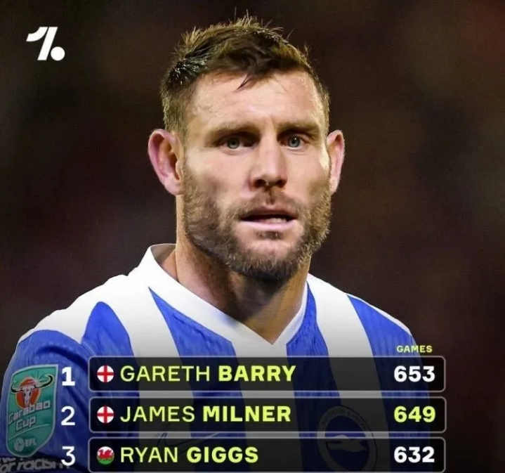 目前,英超历史出场记录 由加雷斯·巴里保持,他为653场。对于刚刚度过40岁生日的米尔纳来说,4场的差距已是触手可及。只要保持强健 ,他极有可能在未来一个多月内就完成对传奇的跨越 ,将自己的名字独一无二地刻在英超历史的丰碑上。