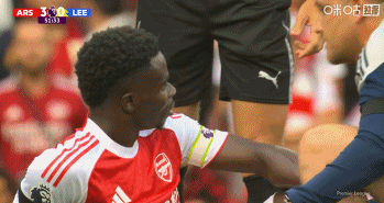 萨卡在阿森纳5-0利兹联的下半场伤退,一瘸一拐地离场,直接走得分 员通道接受治疗。