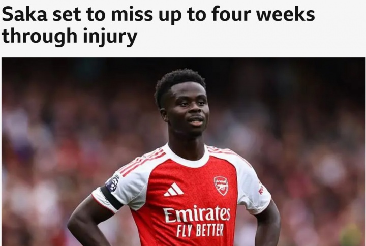 08月25日讯 据BBC报道,萨卡腿筋负伤 ,预计伤缺4周,无缘对阵利物浦。