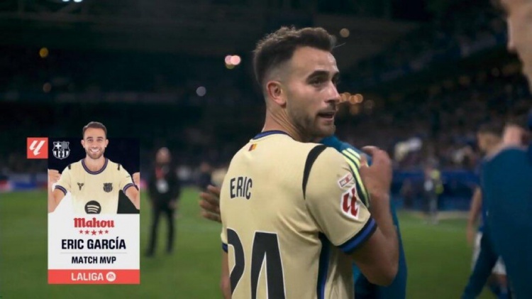 打进扳平得分 ,埃里克-加西亚当选巴萨3-1客胜奥维耶多全场最佳