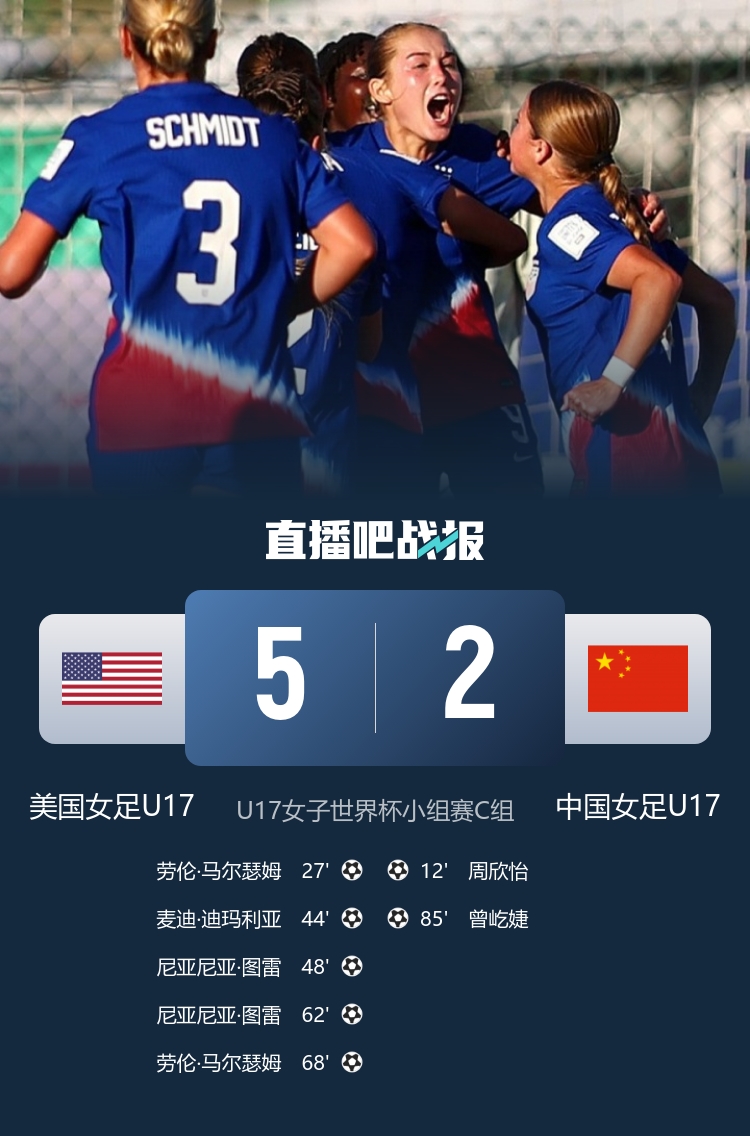周欣怡世界波,曾屹婕定位球直接破门,中国女足U17以2-5不敌美国女足U17。