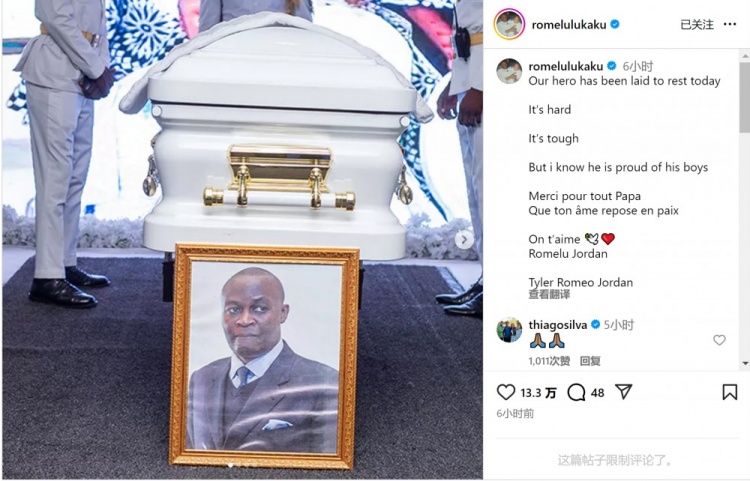 卢卡库的父亲罗杰-卢卡库于上个月去世,享年58岁。卢卡库社媒发布葬礼照片,配文:“我们的英雄今天已安然长眠。难忍其痛、难承其重。但我深知,欧洲杯直播吧他以他的孩子们为荣。
