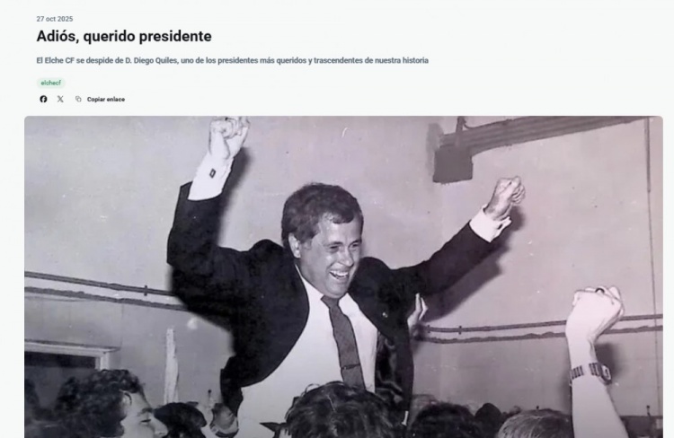10月27日讯 埃尔切俱乐部发布官方悼词,宣布俱乐部前主席迭戈-基莱斯-纳瓦罗去世,享年84岁。